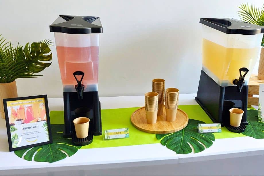 - Bar à Kombucha et Kéfir : ces boissons fermentées sont de véritables alliées pour la santé et le bien-être : riches en probiotiques, elles favorisent la digestion, renforcent le système immunitaire et hydratent durablement.